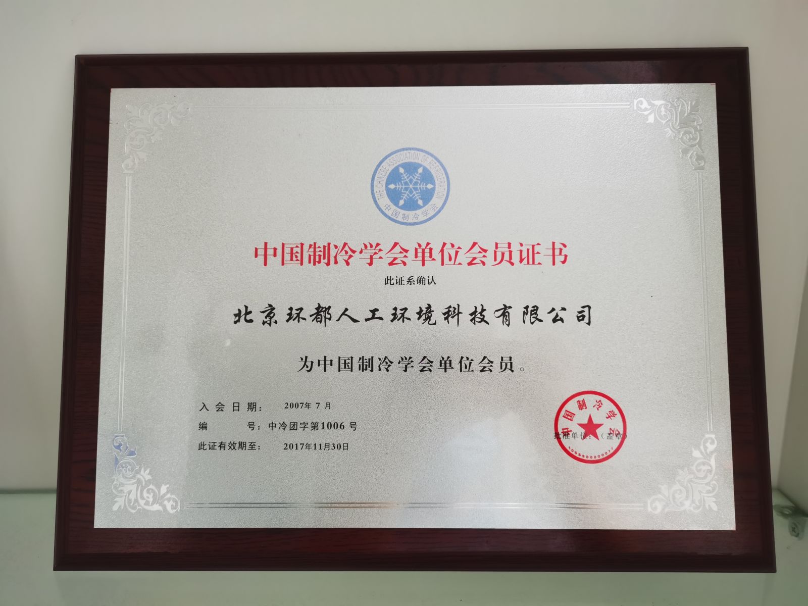 中國制冷學(xué)會(huì)單位會(huì)員證書